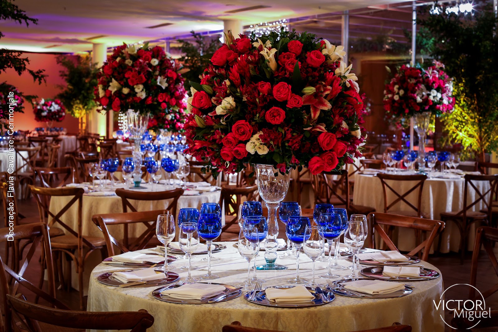 Junto ao tapete vermelho, um caminho de flores surgiam do chão, subindo de encontro aos arranjos mais altos para criar um lindo jardim de onde surgiriam cada um dos casais de padrinhos, pais, crianças e eles: os noivos!